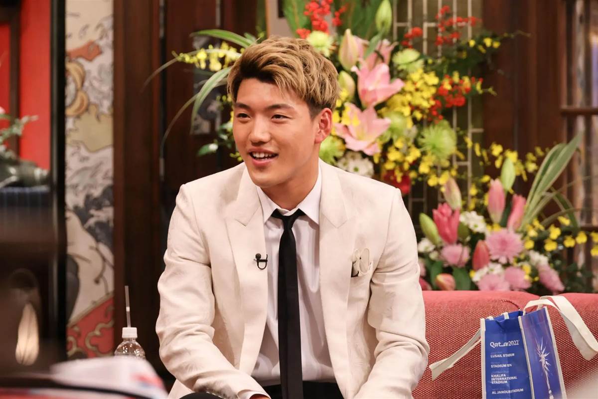 「そのつもりやねん、家出る時から。堂安の奥さんが『カッコいい…』って」とその場にいた堂安の妻もメロメロ状態だったと言い、最後に「『サッカーってユニホーム交換あるよね』。このふりも考えとんねん。だいたい3日ぐらい前から、あいつ」とぼやいて笑いを誘った。