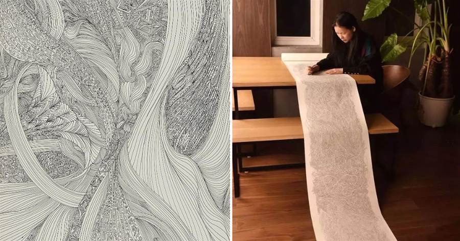 這是一幅用油性水筆劃的長卷,