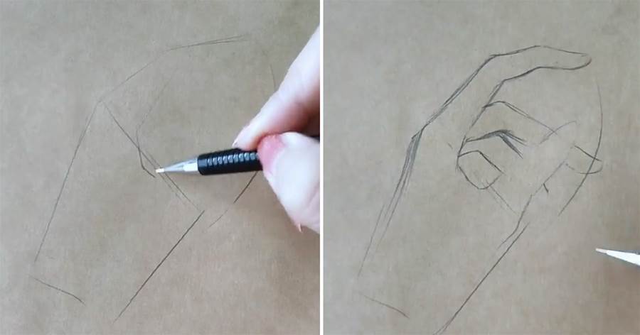 不知道還以為是在畫手榴彈呢,但是現在我們可以通過輪廓,分辨出這是在畫一雙手呢。看看這手指纖細修長,看來美術功底還是不錯的。