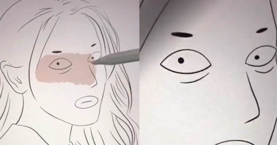 當畫面拉遠的時候又有了不一樣的感覺,其實拋開五官不談,整體造型還是和本人很像的,美術生換了另外一種顏色的畫筆進行二次上色,這個時候的膚色還是很違和的,分布非常不均勻,看起來很奇怪,網友們已經斷定這名美術生要「翻車」了。