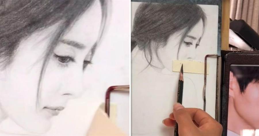 思索一番后,這位美術生便用一張撕了的小紙條遮住楊冪的嘴唇,然后將魏大勛的照片放在畫像的旁邊,對著魏大勛的嘴就開始繪畫。