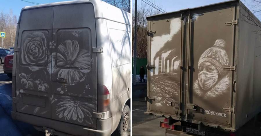 他把布滿灰塵的箱車作為自己的畫布,最后都會把它們變成一幅讓車主都不忍心洗車的精美畫作。